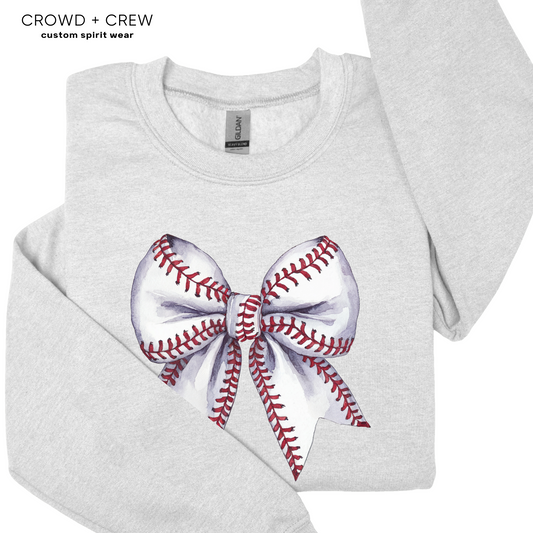 Baseball Bow Adult Fleece Crewneck Sweatshirt